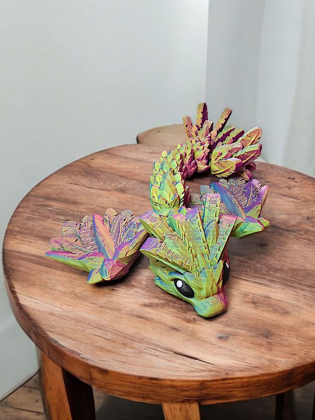 In leuchtenden oder schimmernden Filamenten gedruckt, wird der Baby Feder-Drache zum echten Blickfang!