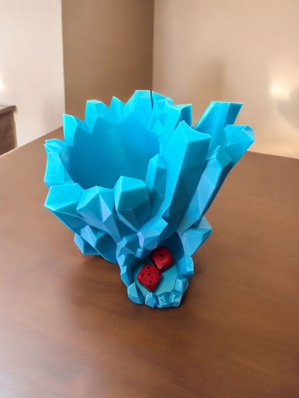 Unser Crystal Dice Tower ist mehr als nur ein Würfelturm – er ist ein fantasievolles Centerpiece für jeden Spieltisch. Inspiriert von natürlichen Kristallformationen, verbindet er ästhetische Magie mit praktischer Vielseitigkeit: Neben dem Würfelmechanismus bietet er einen integrierten Halter für eine Standard-Getränkedose – ideal für deinen Zaubertrank, Kaffee oder das Feierabendbier während epischer Abenteuer.