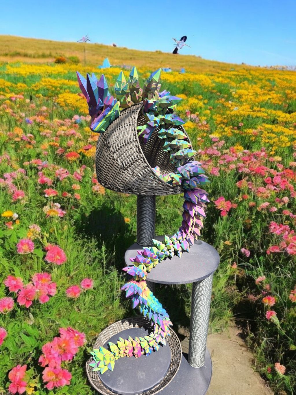 Der Crystal Dragon 3XL aus PLA ist eine atemberaubende Kunstskulptur, die die Eleganz und Majestät eines Drachen verkörpert. Mit einer Länge von ca. 200 cm und einem Gewicht von ca. 3 kg ist dieser Drache ein imposantes Kunstwerk mit beweglichen Gliedern, das jeden Raum in einen mystischen Ort verwandelt.