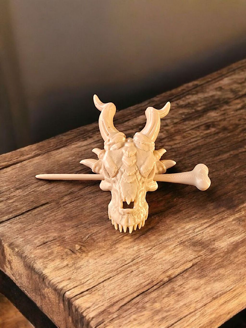 Verleihe deinem Look eine kraftvolle und mystische Note mit diesem außergewöhnlichen Haarschmuck in Form eines Drachenschädels, gefertigt im hochwertigen 3D-Druckverfahren. Die detailreiche Gestaltung bringt die markanten Züge eines Drachen perfekt zur Geltung – von den scharf modellierten Konturen bis zur faszinierenden Struktur des Schädels.