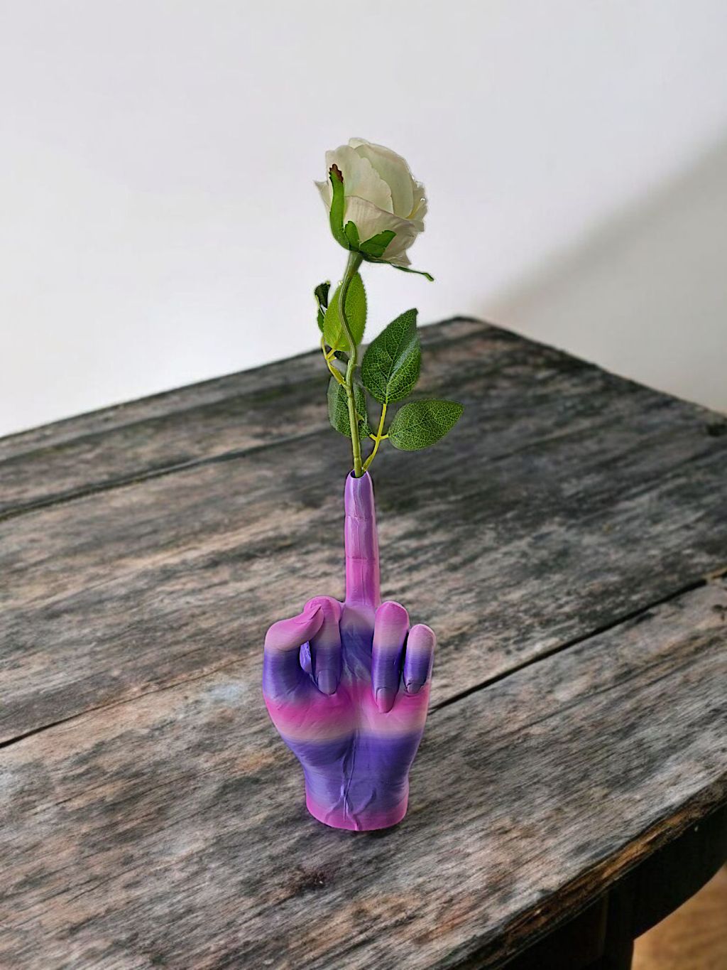 Diese außergewöhnliche Vase in Form eines ausgestreckten Mittelfingers ist nicht nur ein Statement, sondern ein echter Blickfang. Mit modernster 3D-Drucktechnologie gefertigt, kombiniert sie provokantes Design mit funktionaler Eleganz. Egal ob als humorvolles Geschenk, rebellisches Wohnaccessoire oder ironischer Deko-Akzent – diese Vase sorgt garantiert für Gesprächsstoff.